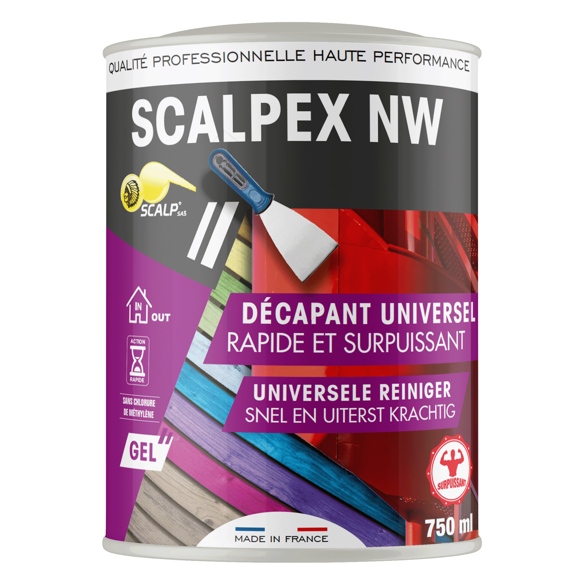 Fruit de la recherche avancée des laboratoires SCALP, SCALPEX® NW NG est formulé sans dichlorométhane, sans NMP, sans NEP, et sans phosphate, pour offrir une solution de décapage plus performante. Malgré l’absence de solvants agressifs, son efficacité reste comparable aux versions chlorées.